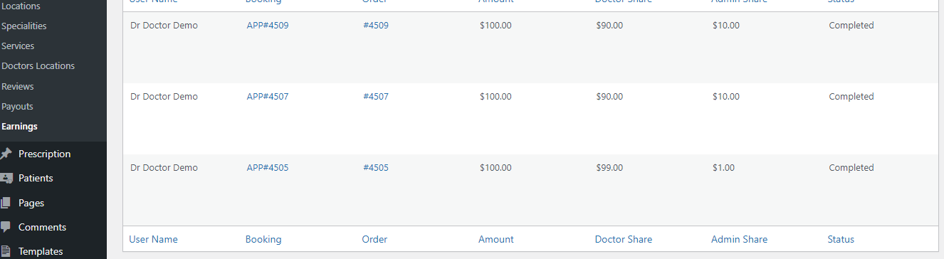 After appointment booking process, the status of doctor's amount is listed in admin > doccure > Earning.