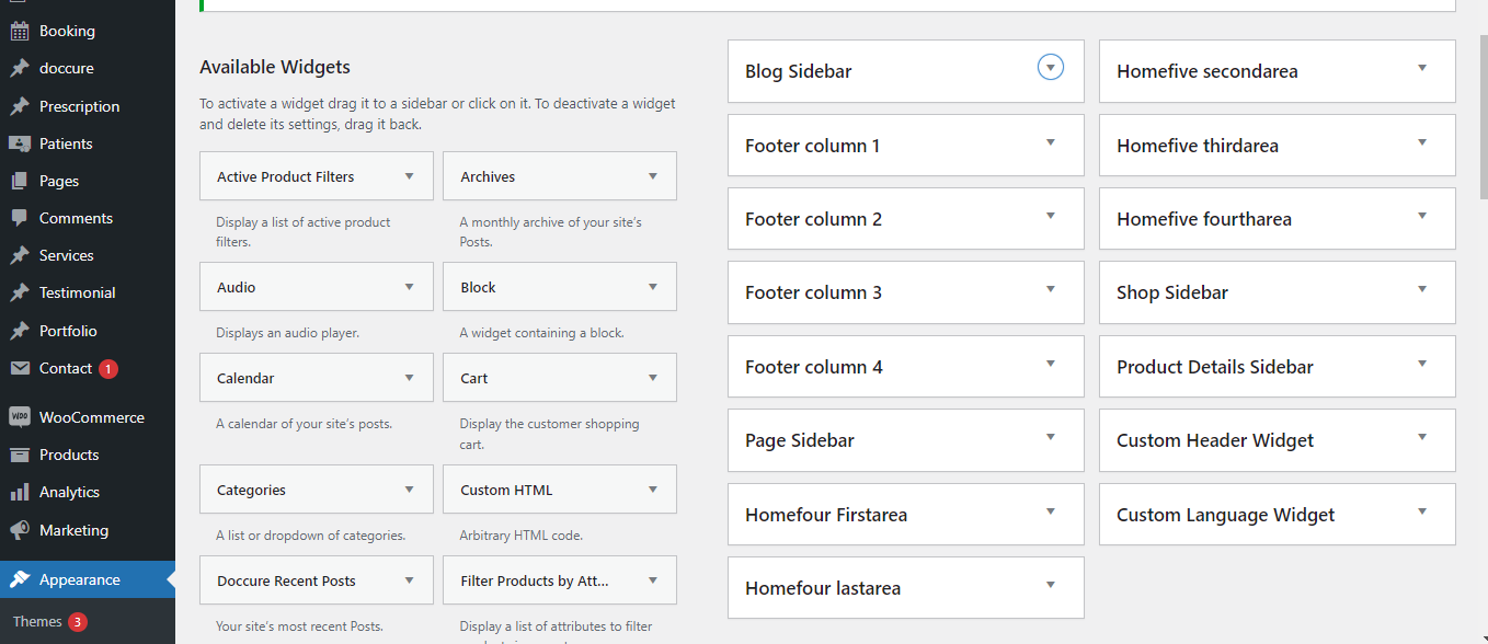 We have created different sidebars for the widgets. There are the individual sidebars for the Blog page, Normal page, and service page named with the Blog sidebar, Page Sidebar, Service sidebar. You can use the widgets to set the widgets as per your requirements. There are also other Fours sidebars for the footer area named Footer 1, Footer 2, Footer 3, Footer 4 to create the different grid layout for the footer.